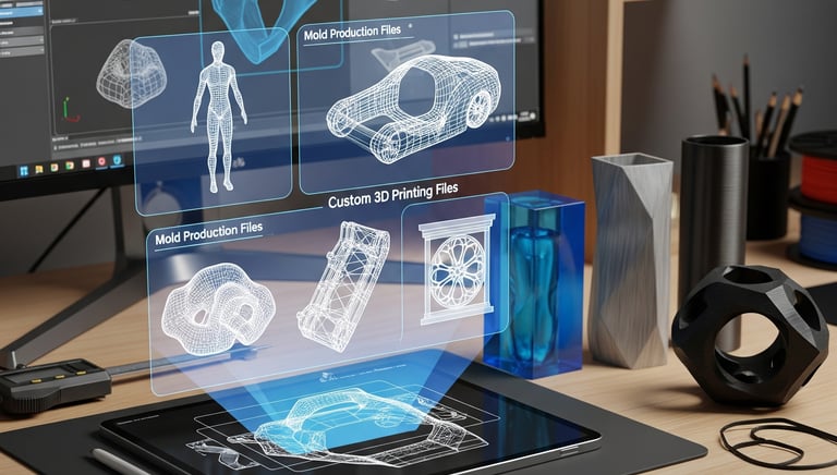 Criamos arquivos 3D de alta qualidade para produção de moldes e impressão 3D personalizada.
